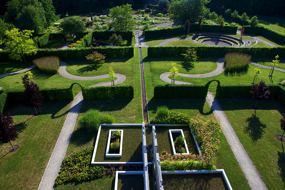 Experience eleven different garden “rooms” in the garden complex on the topics of water, meditation, roses, theatre, spring/autumn, sounds, gravel, colours and touch, as well as the temporary garden and a children’s play garden.