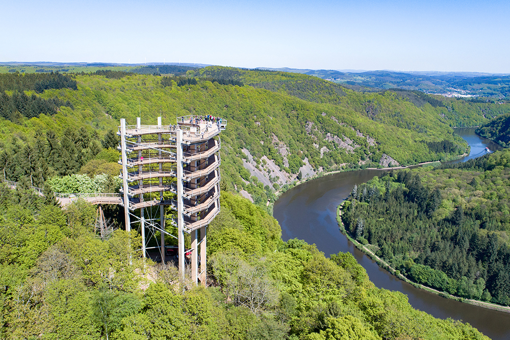 Above the natural wonder of the Saarschleife, in the spa area of Orscholz, the accessible treetop walkway offers unique views and adventures. Experience this unique forest landscape and its life forms in a new dimension.
