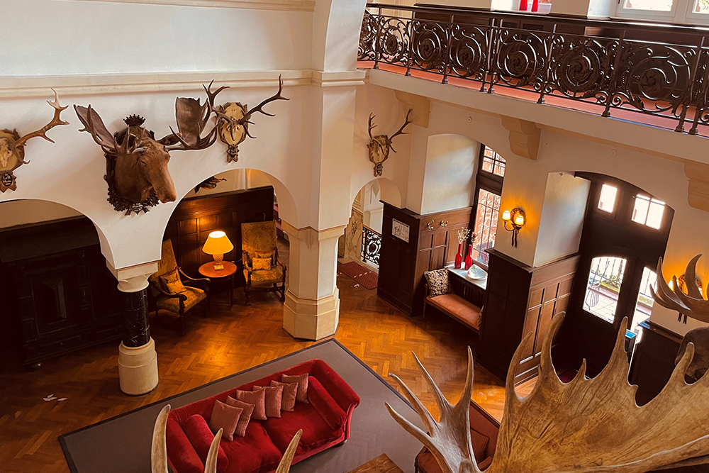 In der eindrucksvollen Lobby lesen Sie gemütlich eine Zeitung, oder genießen Ihren Aperitif vor dem Essen.